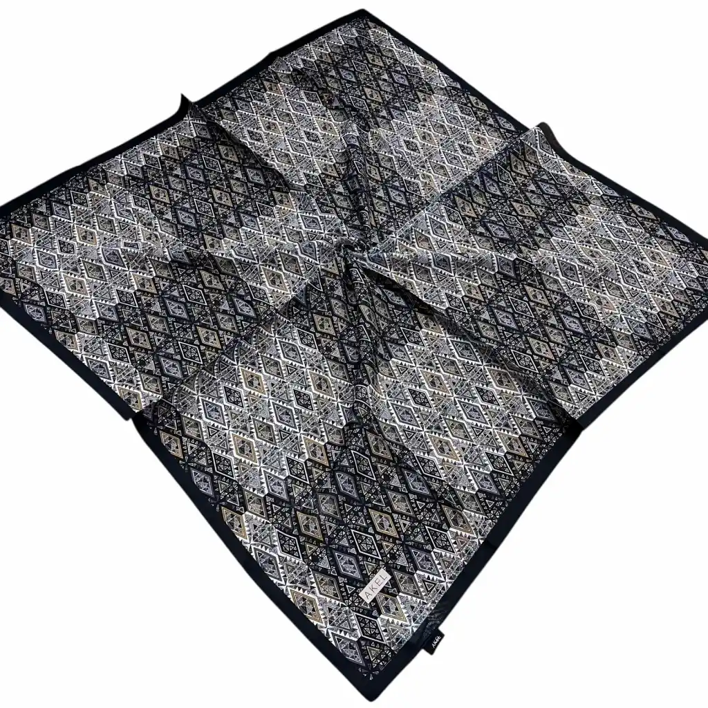 • Akel Soft Pamuk Eşarp, modern tasarımı ve konforlu dokusuyla günlük kombinlerin vazgeçilmez tamamlayıcısıdır. Yumuşak (soft) kumaşı sayesinde gün boyu rahat kullanım sunarken, dijital baskı tekniğiyle elde edilen canlı ve kalıcı renkleriyle stilinize zarif bir dokunuş katar. El dikişi detaylarıyla öne çıkan bu eşarp, hem şık hem de kaliteli bir görünüm arayanlar için idealdir.
