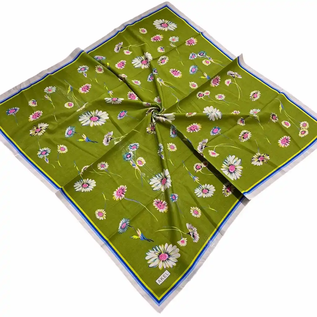 • Akel Soft Pamuk Eşarp, modern tasarımı ve konforlu dokusuyla günlük kombinlerin vazgeçilmez tamamlayıcısıdır. Yumuşak (soft) kumaşı sayesinde gün boyu rahat kullanım sunarken, dijital baskı tekniğiyle elde edilen canlı ve kalıcı renkleriyle stilinize zarif bir dokunuş katar. El dikişi detaylarıyla öne çıkan bu eşarp, hem şık hem de kaliteli bir görünüm arayanlar için idealdir.