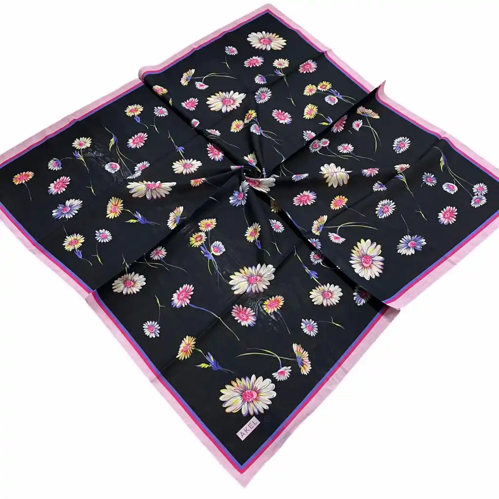 • Akel Soft Pamuk Eşarp, modern tasarımı ve konforlu dokusuyla günlük kombinlerin vazgeçilmez tamamlayıcısıdır. Yumuşak (soft) kumaşı sayesinde gün boyu rahat kullanım sunarken, dijital baskı tekniğiyle elde edilen canlı ve kalıcı renkleriyle stilinize zarif bir dokunuş katar. El dikişi detaylarıyla öne çıkan bu eşarp, hem şık hem de kaliteli bir görünüm arayanlar için idealdir.
