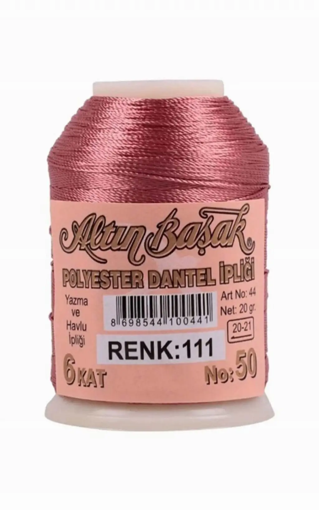 Altınbaşak 20 gram polyester oya ipi, iğne oyası, dantel ve çeşitli el işi çalışmalarında tercih edilen kaliteli ipliklerden biridir. Dayanıklı polyester yapısı sayesinde uzun süreli kullanım sağlar ve parlak renkleriyle yapılan oya modellerinin daha estetik görünmesine yardımcı olur.