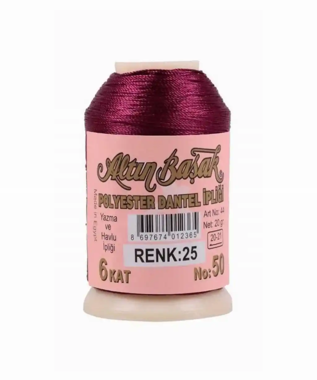 Altınbaşak 20 gram polyester oya ipi, iğne oyası, dantel ve çeşitli el işi çalışmalarında tercih edilen kaliteli ipliklerden biridir. Dayanıklı polyester yapısı sayesinde uzun süreli kullanım sağlar ve parlak renkleriyle yapılan oya modellerinin daha estetik görünmesine yardımcı olur.