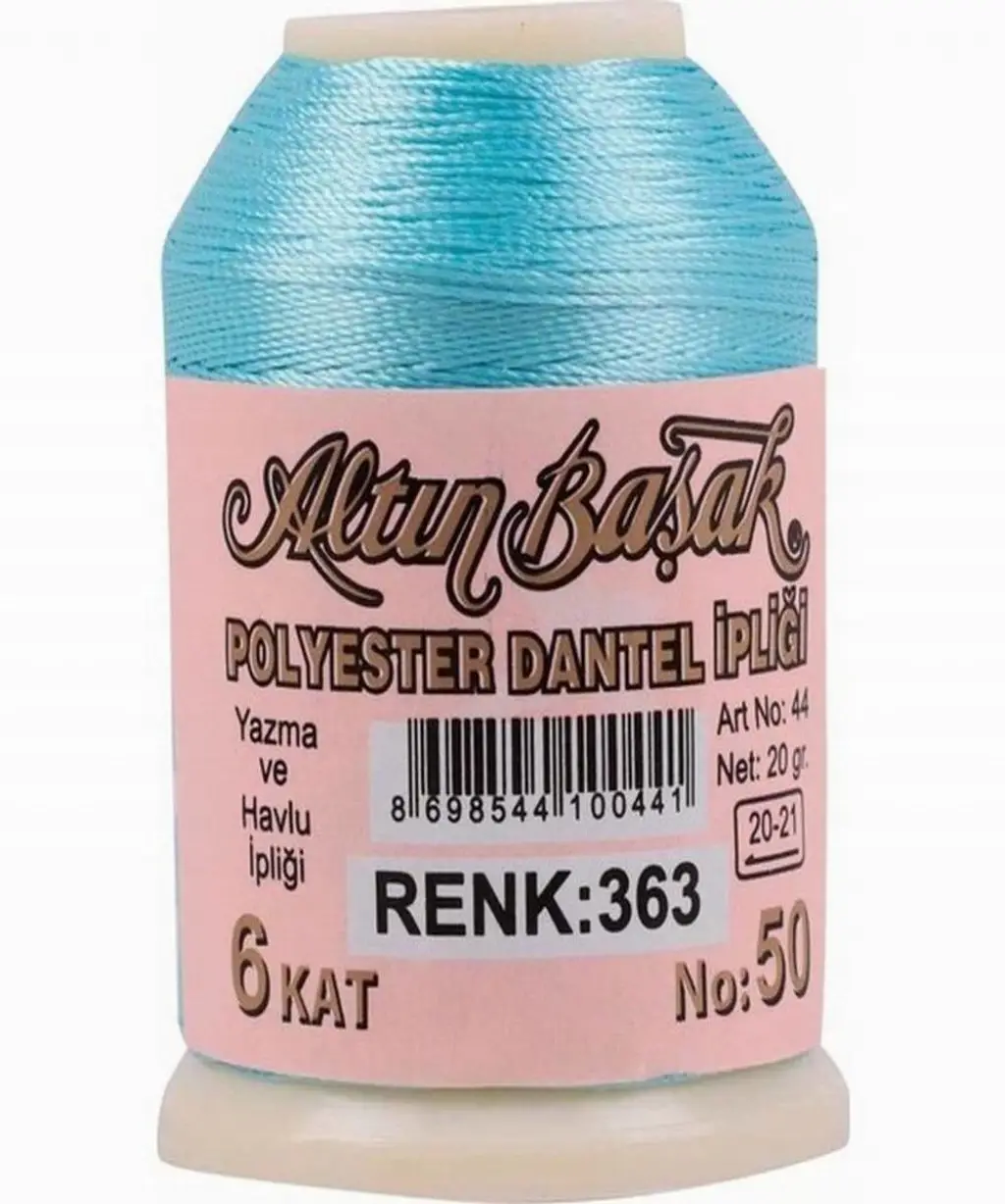 Altınbaşak 20 gram polyester oya ipi, iğne oyası, dantel ve çeşitli el işi çalışmalarında tercih edilen kaliteli ipliklerden biridir. Dayanıklı polyester yapısı sayesinde uzun süreli kullanım sağlar ve parlak renkleriyle yapılan oya modellerinin daha estetik görünmesine yardımcı olur.