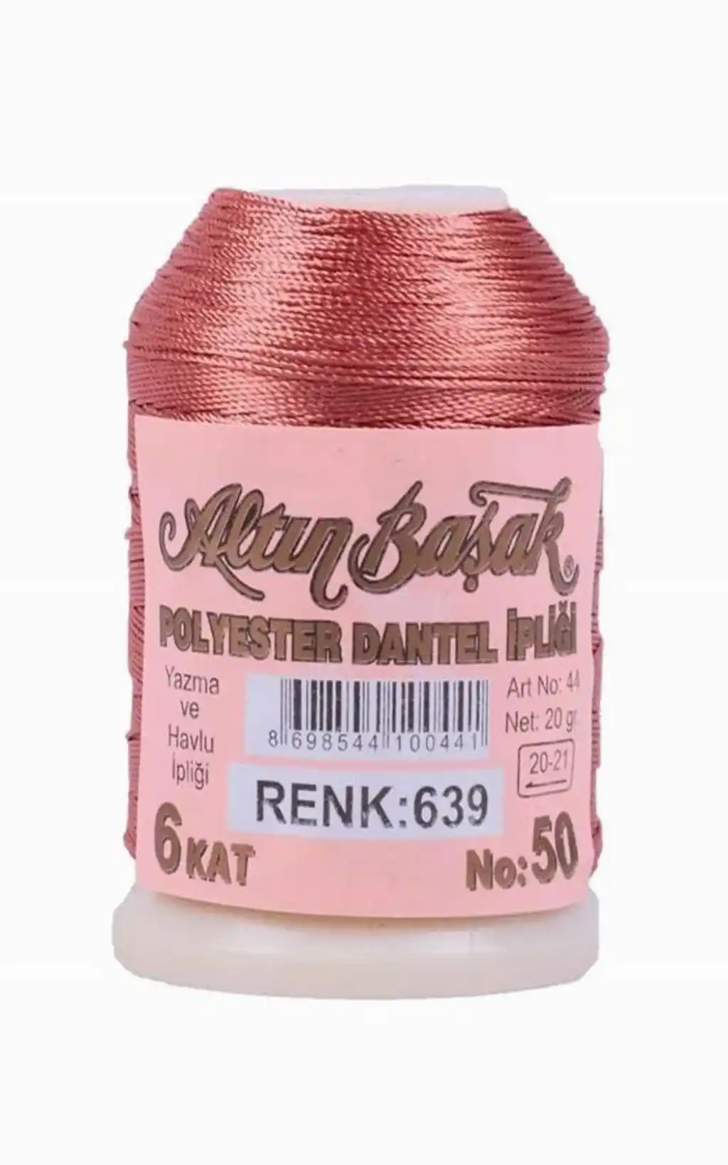 Altınbaşak 20 gram polyester oya ipi, iğne oyası, dantel ve çeşitli el işi çalışmalarında tercih edilen kaliteli ipliklerden biridir. Dayanıklı polyester yapısı sayesinde uzun süreli kullanım sağlar ve parlak renkleriyle yapılan oya modellerinin daha estetik görünmesine yardımcı olur.