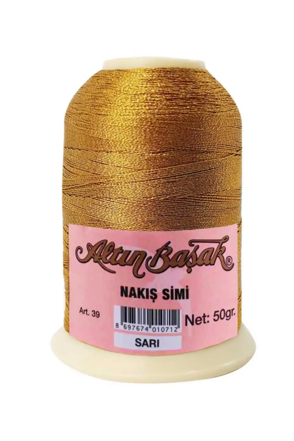 Altınbaşak 50 gram sim ip, el işi ve oya çalışmalarında kullanılan kaliteli ve parlak görünümlü bir ipliktir. Özellikle iğne oyası, tığ oyası ve dantel modellerinde kullanılan bu iplik, simli yapısı sayesinde yapılan modellerin daha şık ve dikkat çekici görünmesini sağlar.