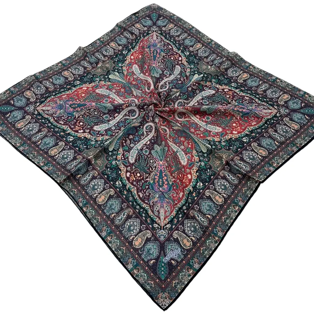 Dijital baskı teknolojisi ile üretilen bu özel eşarp modeli, canlı renklerini uzun süre korur ve her kullanımda ilk günkü şıklığını yansıtır. El dikişi detayları ise ürüne ekstra kalite ve zarafet katmaktadır.
