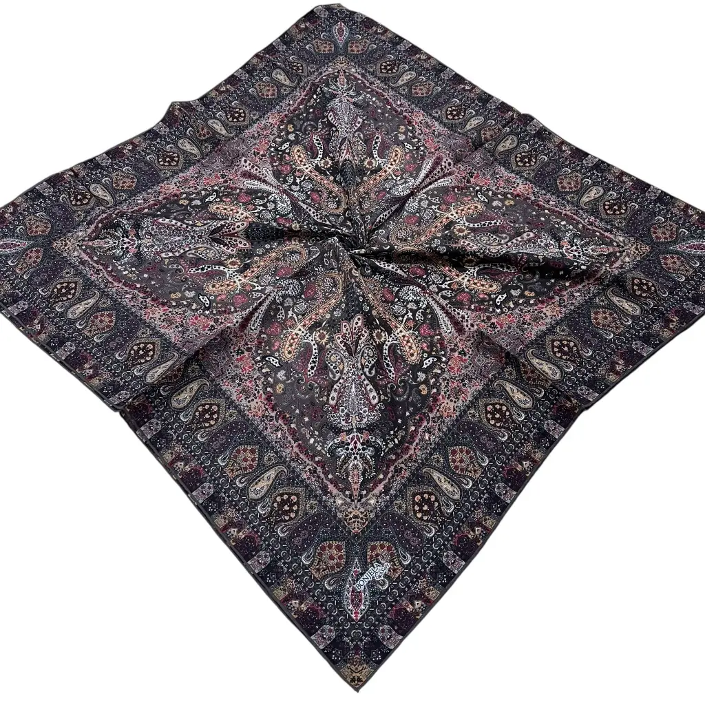 Dijital baskı teknolojisi ile üretilen bu özel eşarp modeli, canlı renklerini uzun süre korur ve her kullanımda ilk günkü şıklığını yansıtır. El dikişi detayları ise ürüne ekstra kalite ve zarafet katmaktadır.