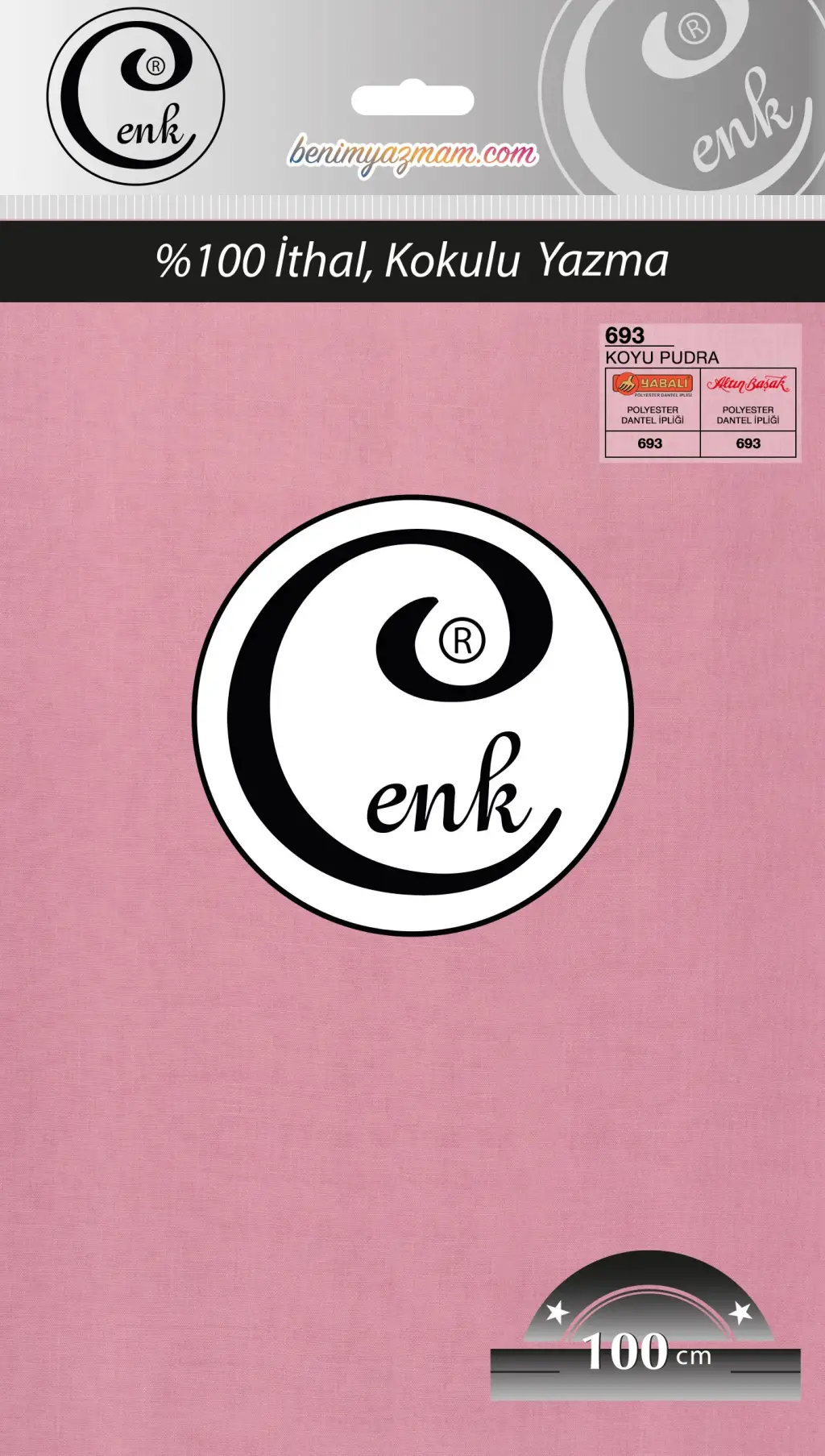 Cenk marka poşetli yazma, tüylenme yapmayan ithal kumaş yapısı sayesinde uzun süre formunu korur. Yumuşak dokusu sayesinde kolay şekil alır ve başta kayma yapmaz. Özellikle iğne oyası, tığ oyası ve mekik oyası için uygun kumaş yapısına sahiptir.