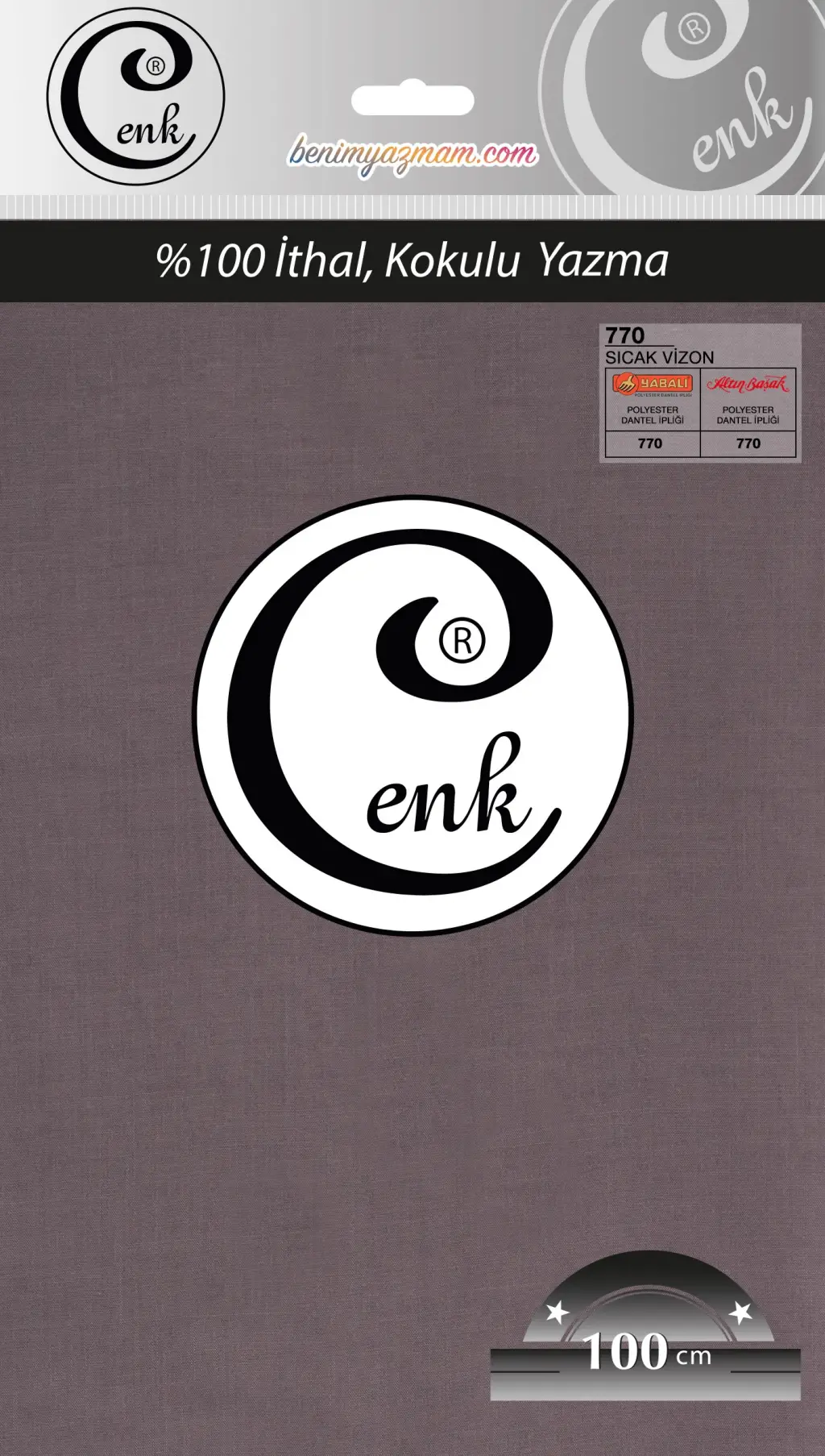 Cenk marka poşetli yazma, tüylenme yapmayan ithal kumaş yapısı sayesinde uzun süre formunu korur. Yumuşak dokusu sayesinde kolay şekil alır ve başta kayma yapmaz. Özellikle iğne oyası, tığ oyası ve mekik oyası için uygun kumaş yapısına sahiptir.
