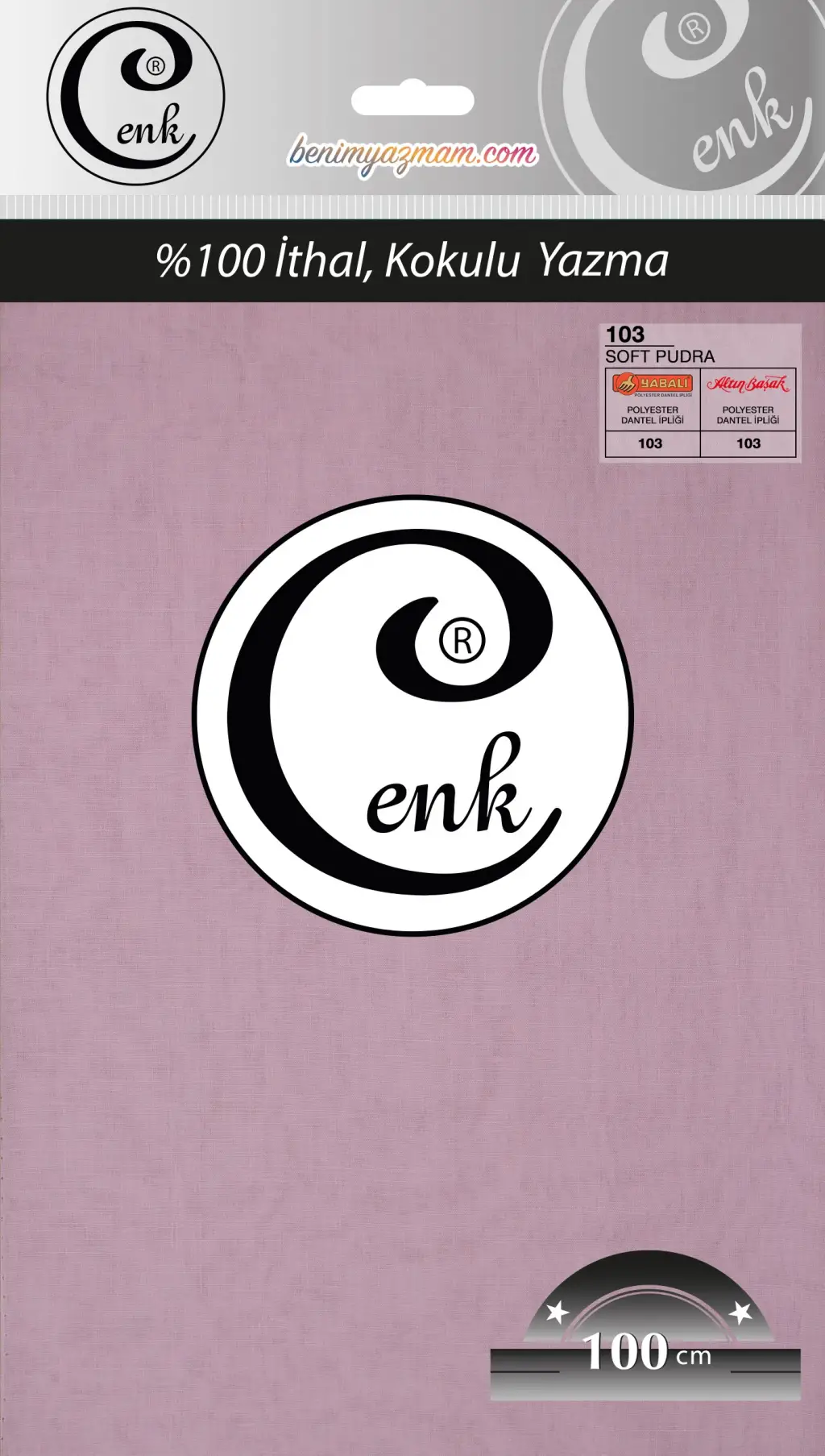 Cenk marka poşetli yazma, tüylenme yapmayan ithal kumaş yapısı sayesinde uzun süre formunu korur. Yumuşak dokusu sayesinde kolay şekil alır ve başta kayma yapmaz. Özellikle iğne oyası, tığ oyası ve mekik oyası için uygun kumaş yapısına sahiptir.