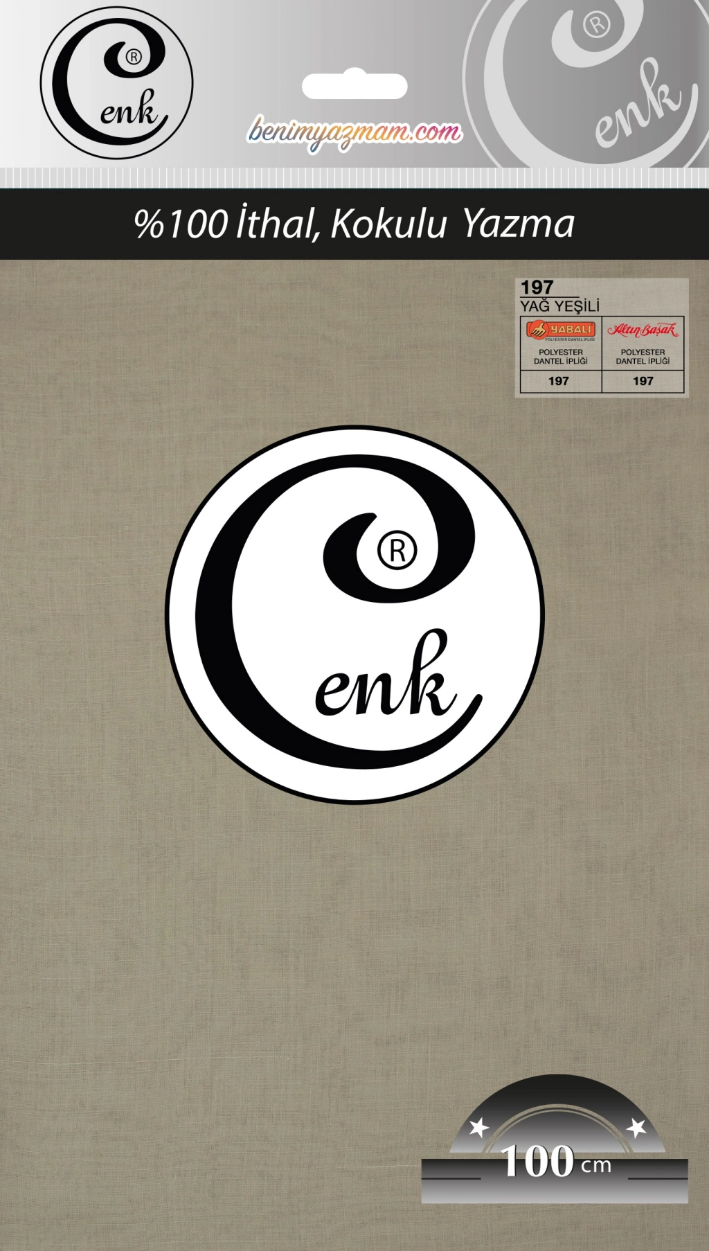 Cenk marka poşetli yazma, tüylenme yapmayan ithal kumaş yapısı sayesinde uzun süre formunu korur. Yumuşak dokusu sayesinde kolay şekil alır ve başta kayma yapmaz. Özellikle iğne oyası, tığ oyası ve mekik oyası için uygun kumaş yapısına sahiptir.