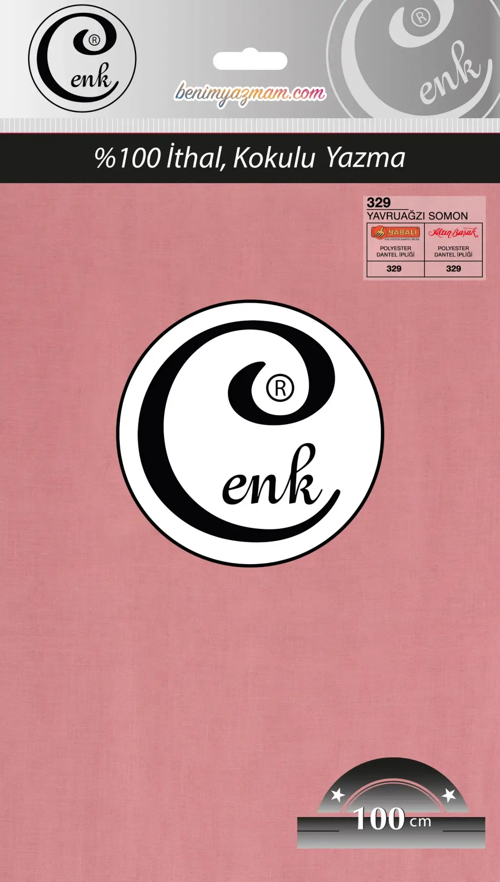 Cenk marka poşetli yazma, tüylenme yapmayan ithal kumaş yapısı sayesinde uzun süre formunu korur. Yumuşak dokusu sayesinde kolay şekil alır ve başta kayma yapmaz. Özellikle iğne oyası, tığ oyası ve mekik oyası için uygun kumaş yapısına sahiptir.