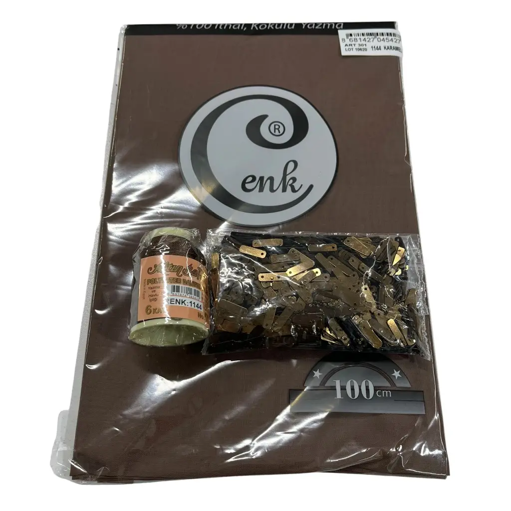 Cenk Düz Yazma Koyu Karamel + Altınbaşak Polyester Oya İpi + Baget Oya Pulu Seti – Hazır Oya Paketi (200 TL) (305-1144)