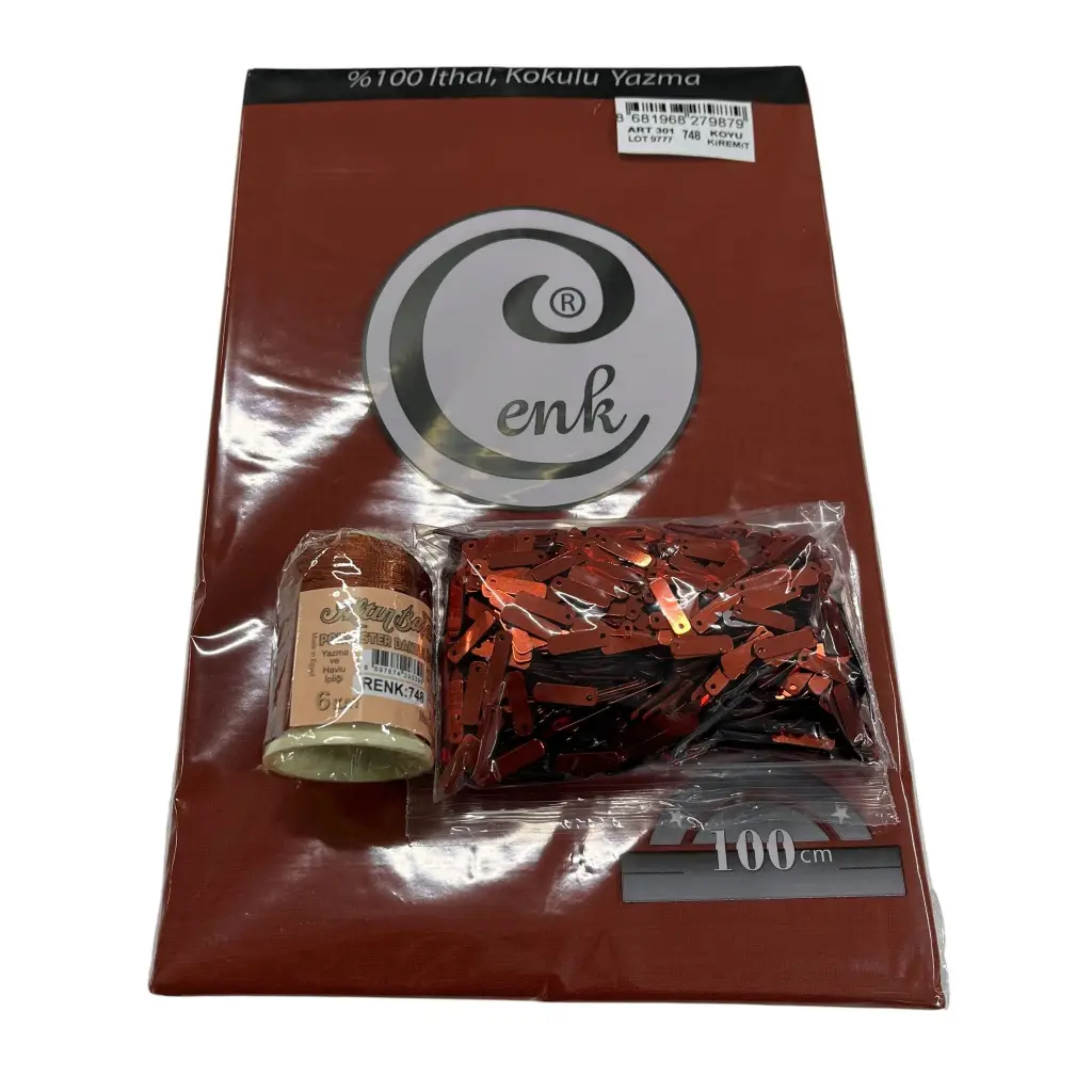 Cenk Düz Yazma Koyu Kiremit + Altınbaşak Polyester Oya İpi + Baget Oya Pulu Seti – Hazır Oya Paketi (200 TL) (305-748)