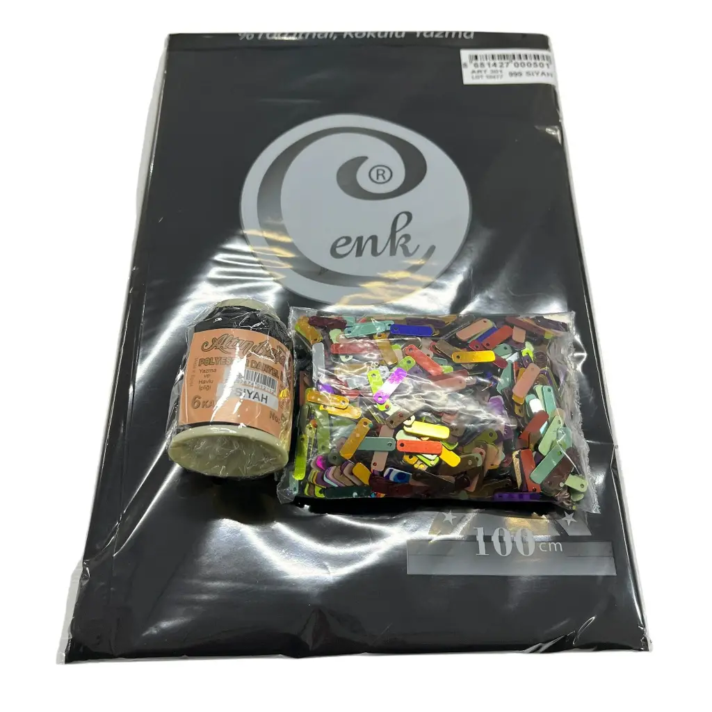 Cenk Düz Yazma Siyah + Altınbaşak Polyester Oya İpi + Baget Oya Pulu Seti – Hazır Oya Paketi (200 TL) (305-999-5)