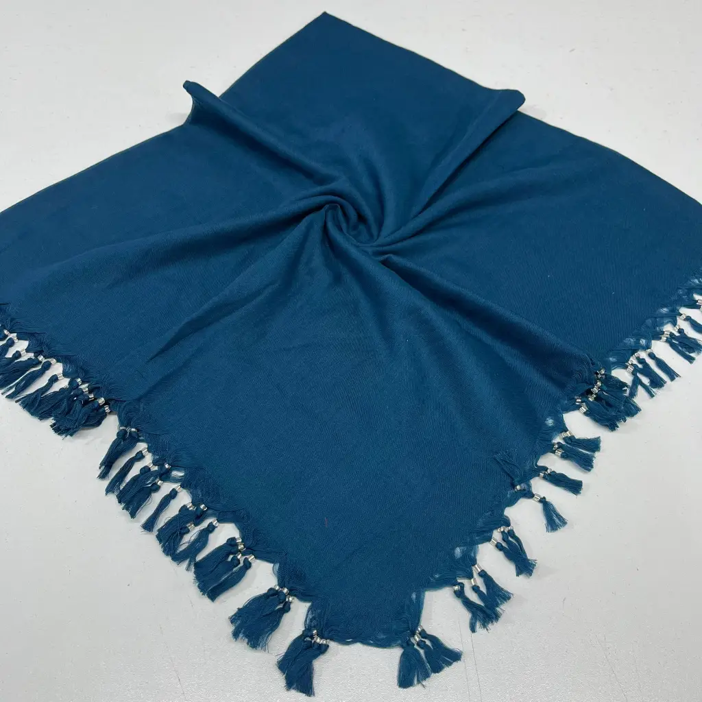 110 cm Firuze Düz Renk Sökme Boncuklu Koton Yazma