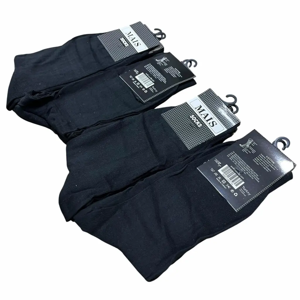 İhracat Fazlası Toptan Erkek Çorap 12’li Siyah Paket
