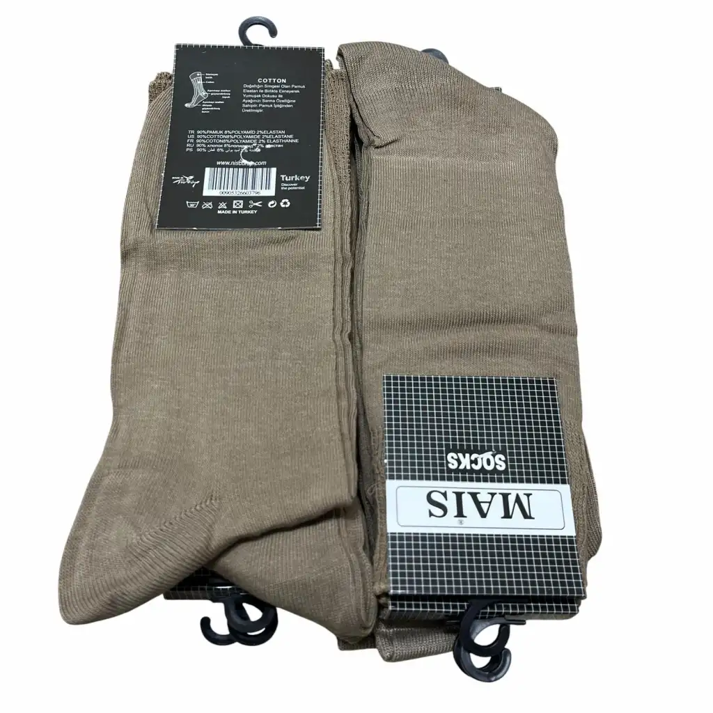 İhracat Fazlası Toptan Erkek Çorap 12’li Vizon Paket