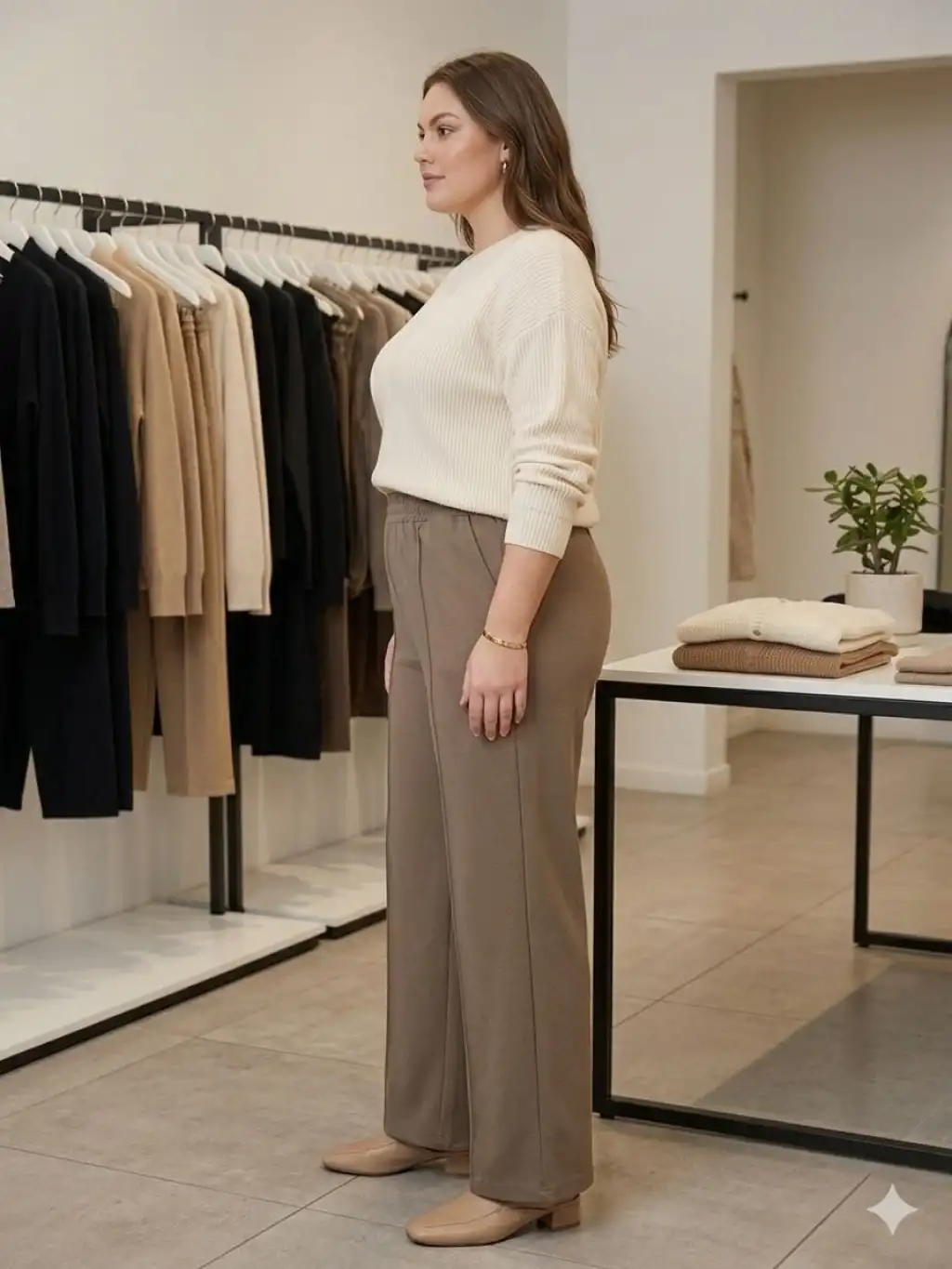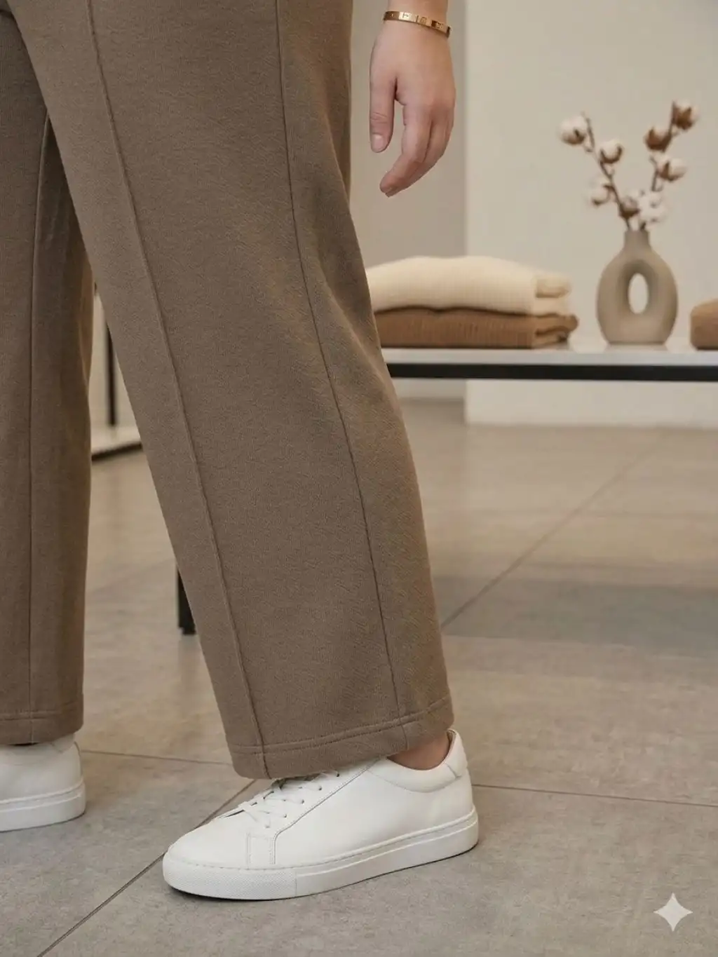 Örme kumaş kadın battal kalıp bej pantolon modeli, geniş kalıp yapısı ve rahat kesimi ile konfor odaklı giyim tercih edenler için ideal bir seçenektir. Günlük kullanımda maksimum rahatlık sunan bu model, esnek ve yumuşak dokulu örme kumaşı sayesinde gün boyu konfor sağlar.