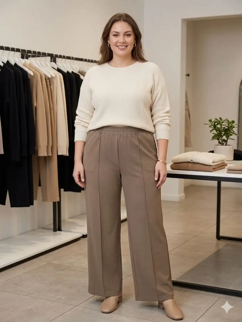 Örme kumaş kadın battal kalıp bej pantolon modeli, geniş kalıp ve rahat yapısı ile maksimum konfor sunar. Toptan satış avantajı ile uygun fiyatlarla hemen sipariş verin.