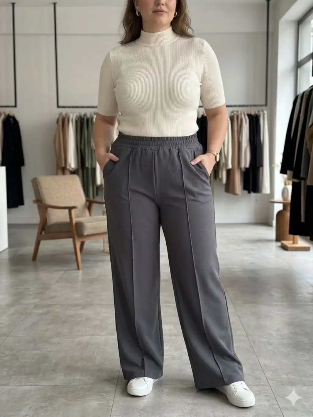 Örme kumaş kadın battal kalıp gri pantolon modeli, geniş kalıp yapısı ve rahat kesimi ile konfor odaklı giyim tercih edenler için ideal bir seçenektir. Günlük kullanımda maksimum rahatlık sunan bu model, esnek ve yumuşak dokulu örme kumaşı sayesinde gün boyu konfor sağlar.