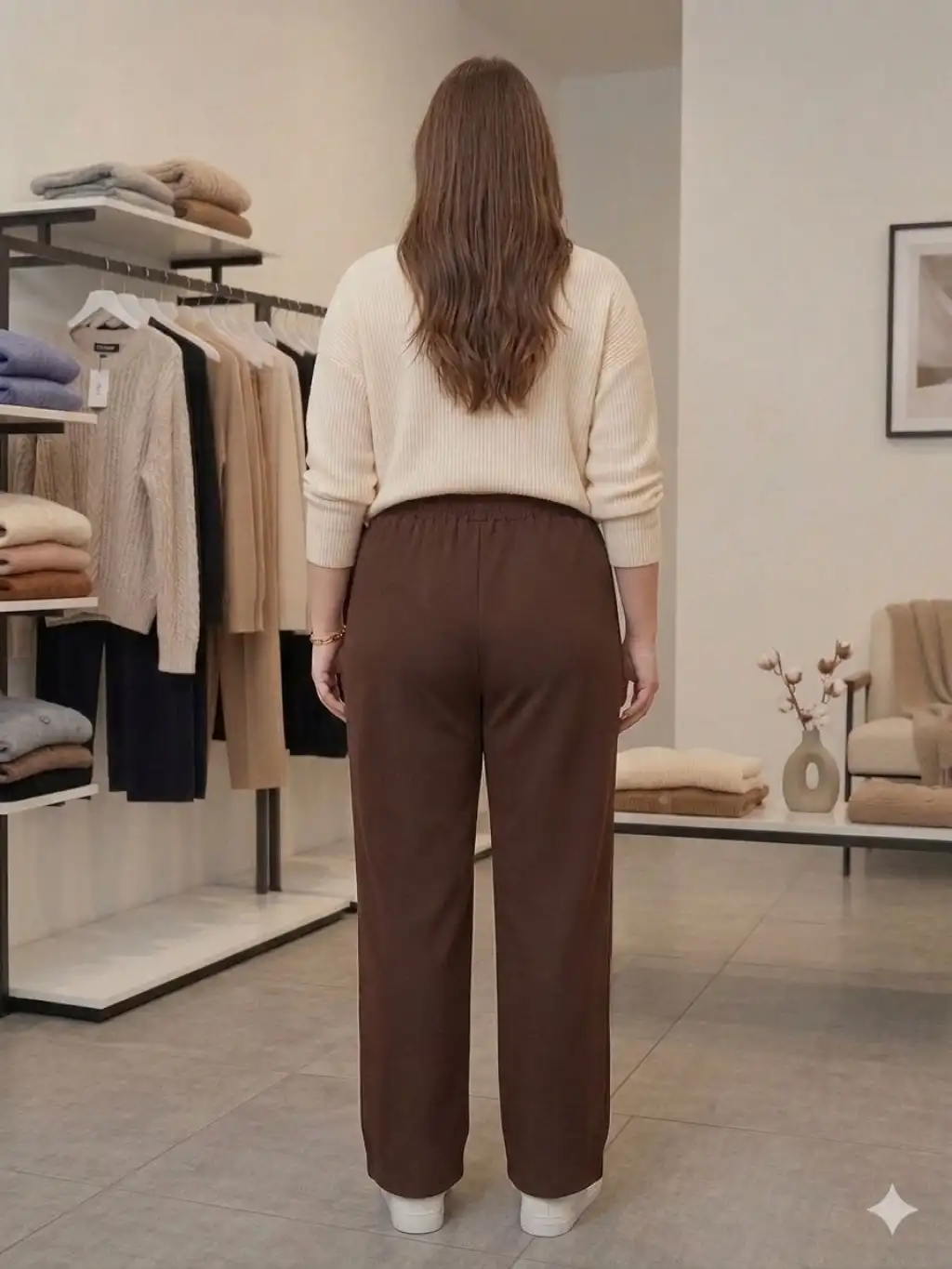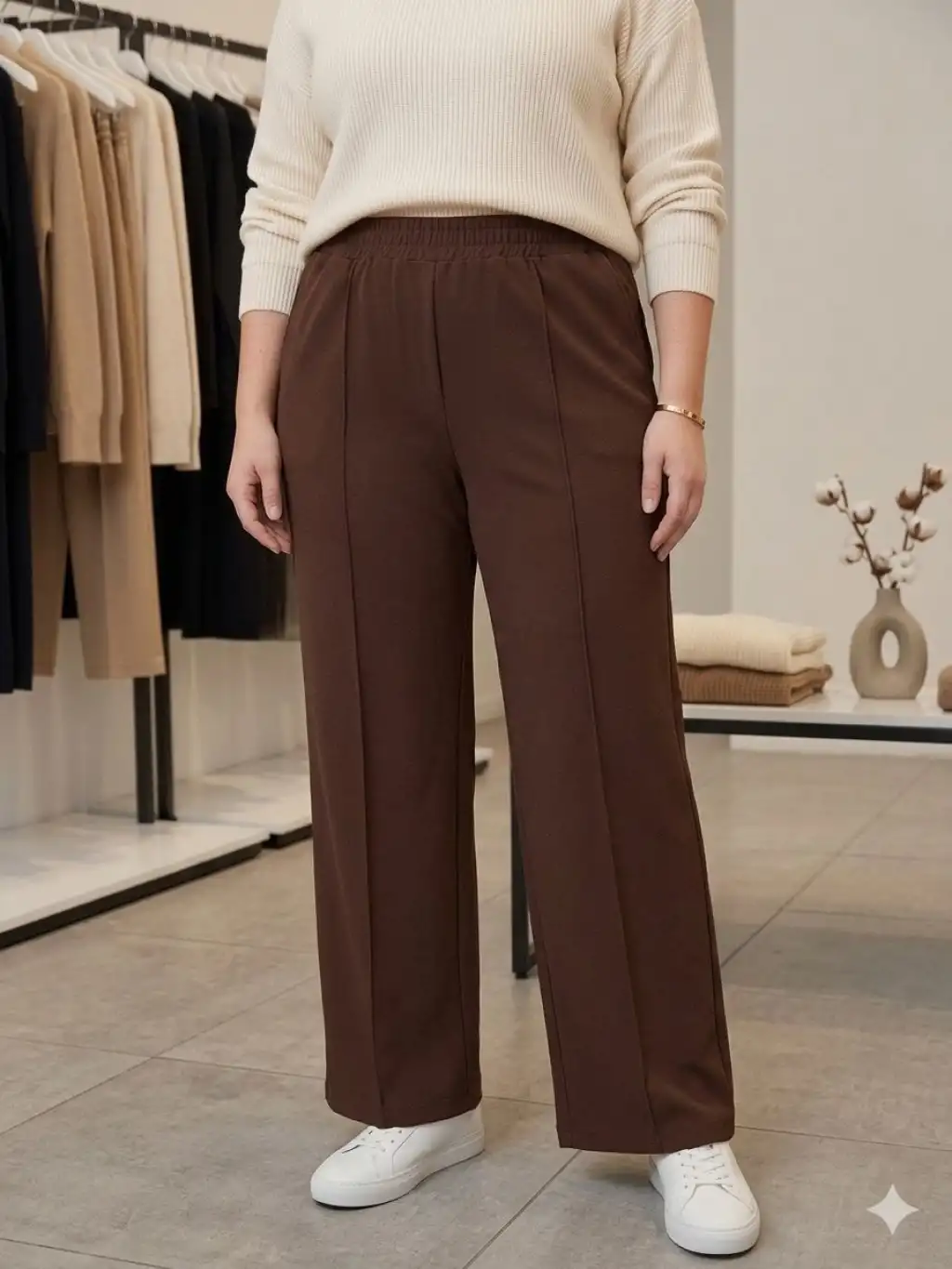 Örme kumaş kadın battal kalıp kahve pantolon modeli, geniş kalıp ve rahat yapısı ile maksimum konfor sunar. Toptan satış avantajı ile uygun fiyatlarla hemen sipariş verin.