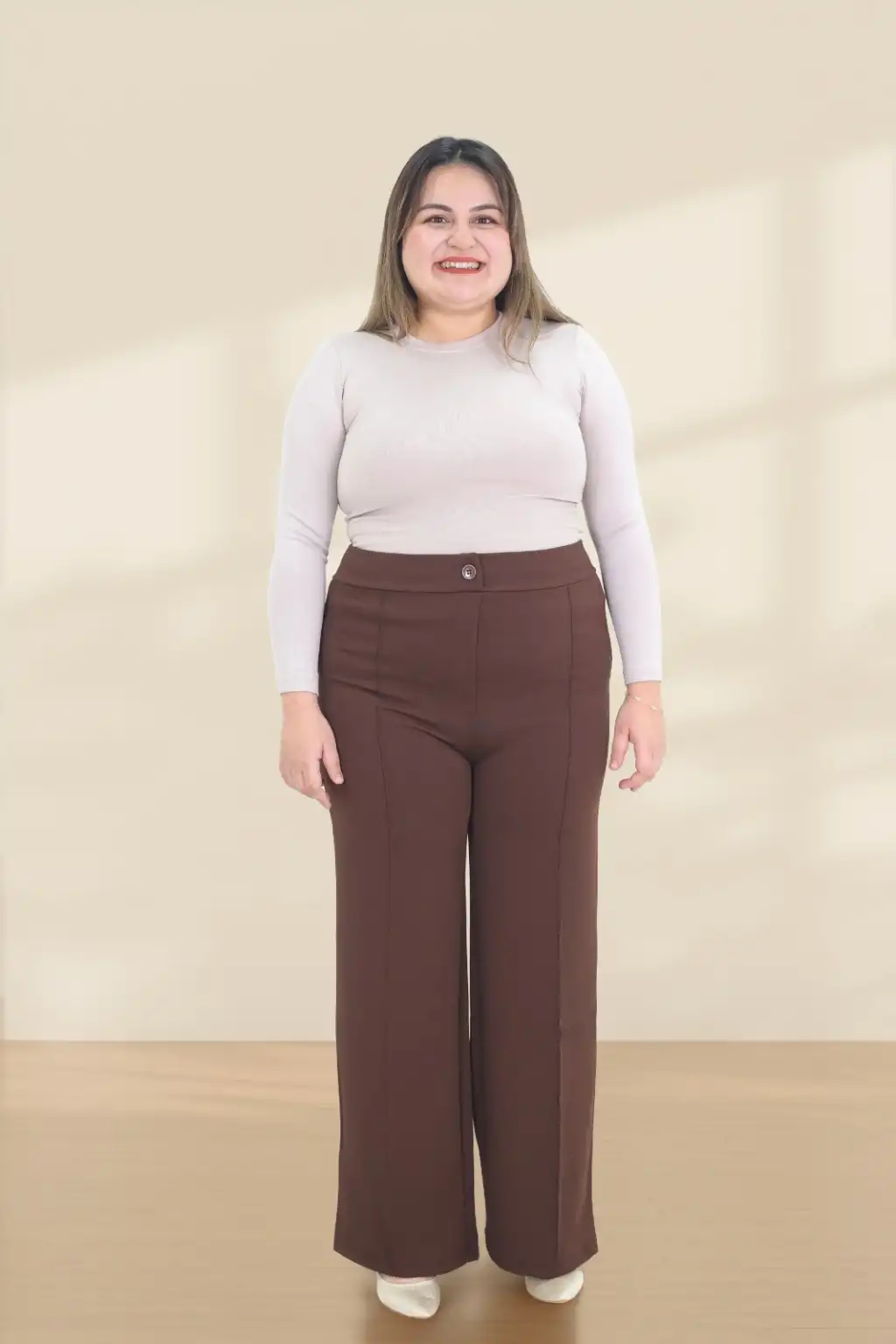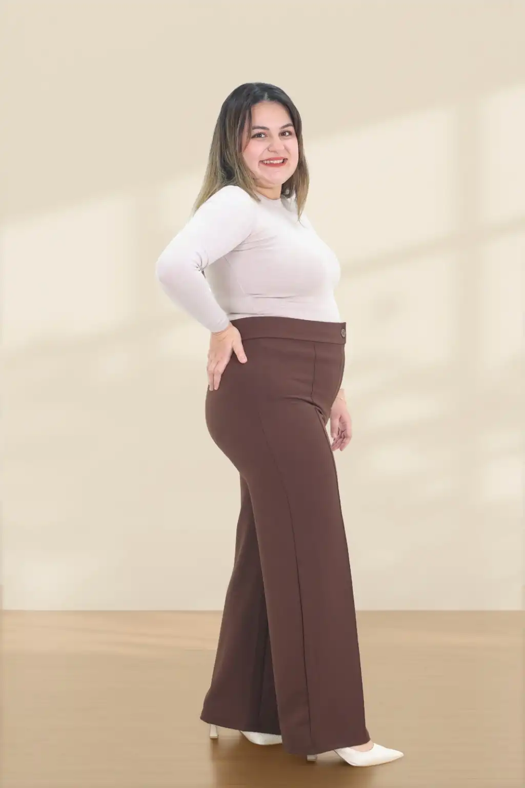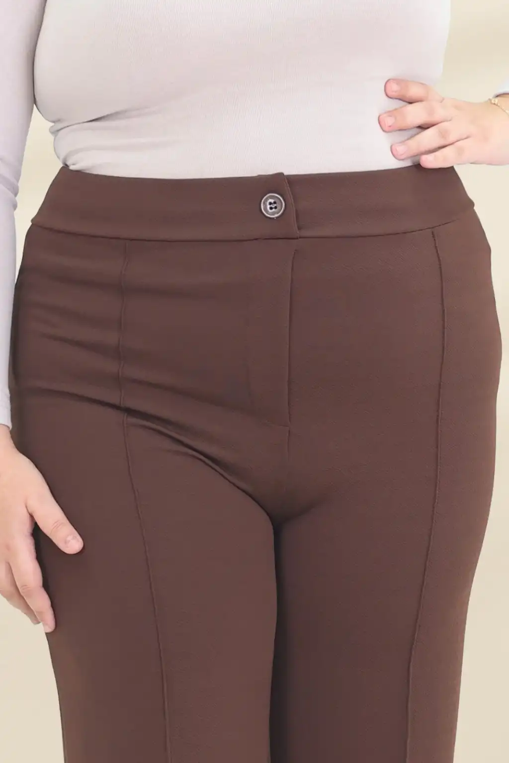 Kadın Dar Kalıp Battal Kahverengi Kumaş Pantolon
