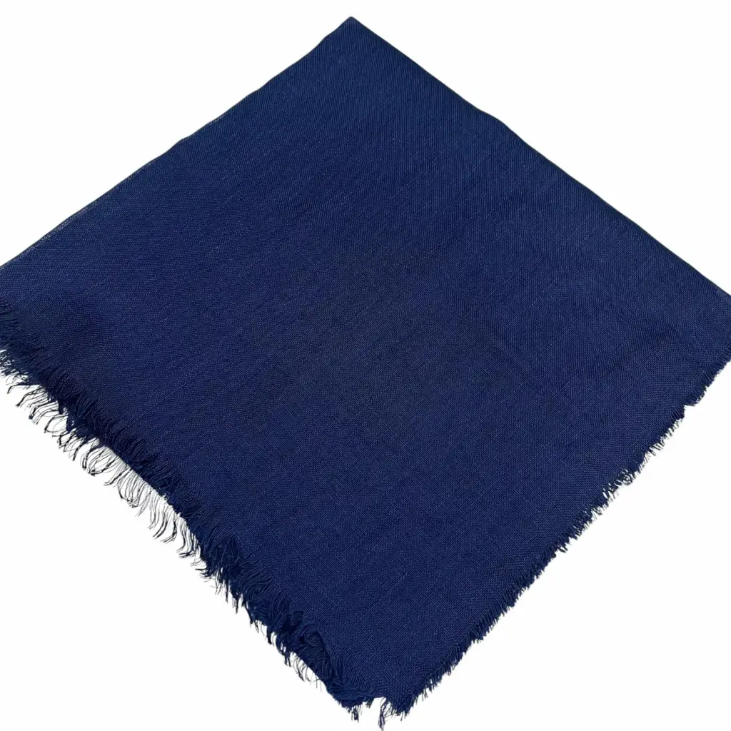 Kampanyalı Düz Flamlı Keten Eşarp Lacivert (Dzf98-25)