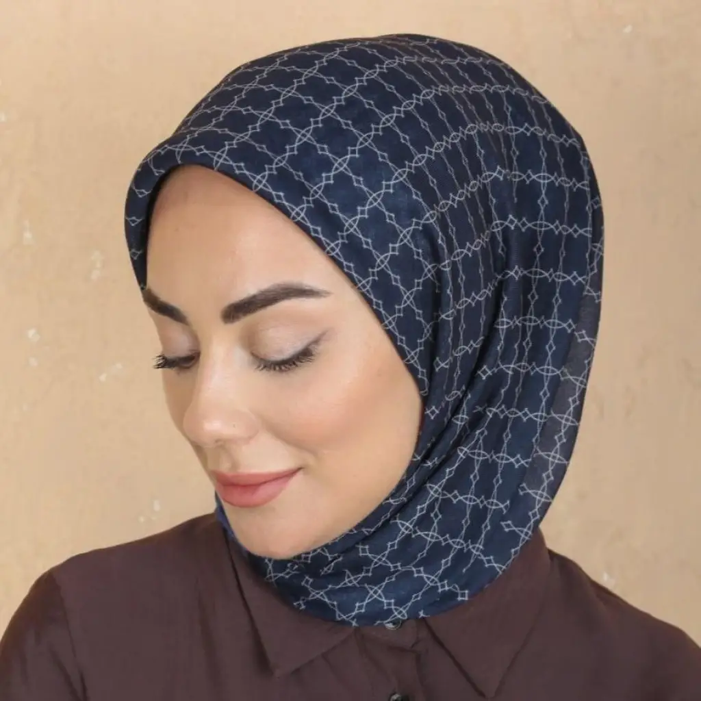 Locella El Dikişli Dijital Soft Eşarp – Lacivert Serisi