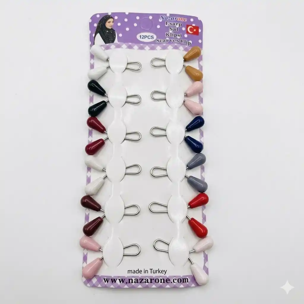 • Nazarone Karışık Renk Eşarp Klipsi 1 Paket (Eİ01-15)