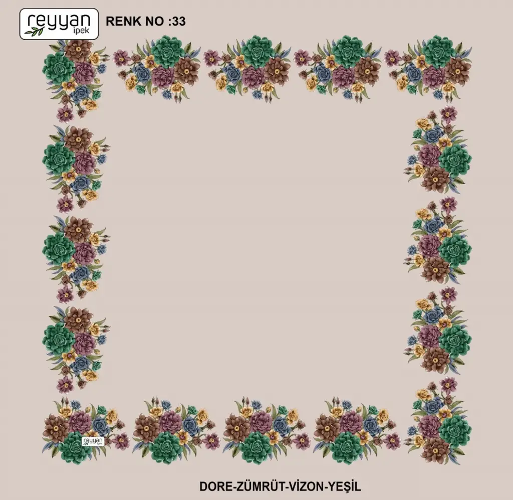 Reyyan İpek Yazma, orijinal parlaklığına sadık kalan canlı ve uzun ömürlü renkler sağlayan birinci sınıf kumaş üzerine 1. sınıf baskıya sahiptir.