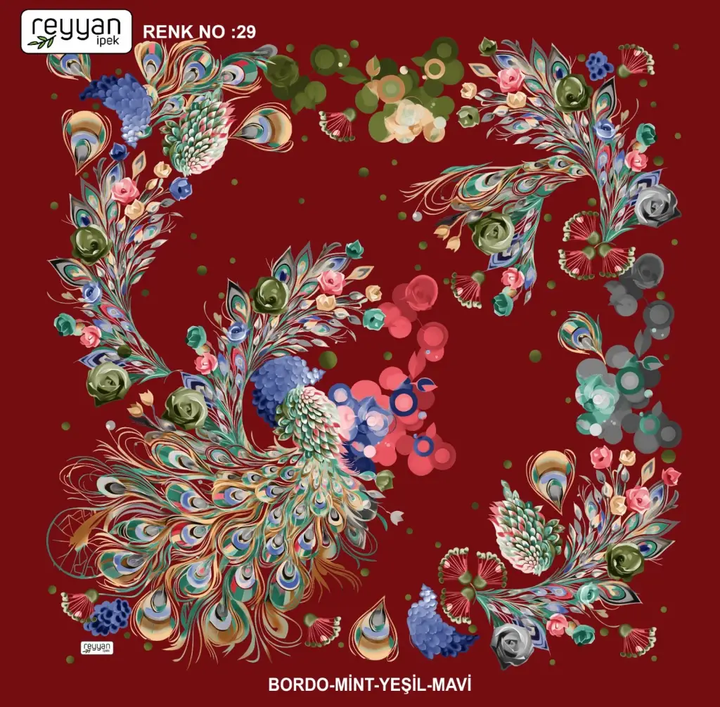 Reyyan İpek Yazma, orijinal parlaklığına sadık kalan canlı ve uzun ömürlü renkler sağlayan birinci sınıf kumaş üzerine 1. sınıf baskıya sahiptir.