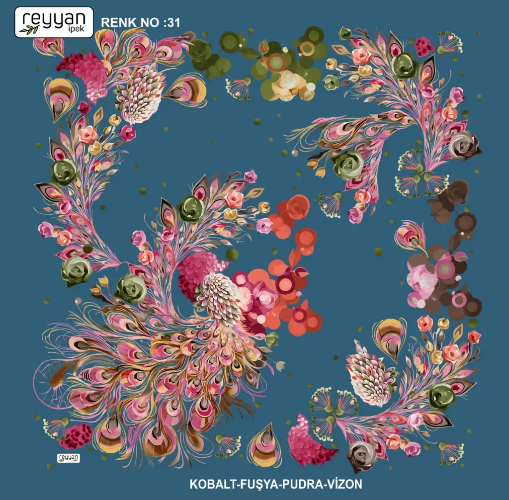 Reyyan İpek Yazma, orijinal parlaklığına sadık kalan canlı ve uzun ömürlü renkler sağlayan birinci sınıf kumaş üzerine 1. sınıf baskıya sahiptir.