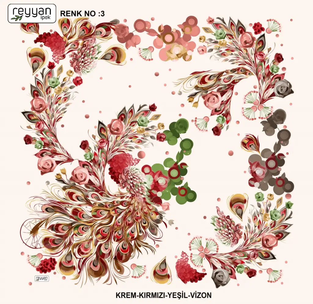Reyyan İpek Yazma, orijinal parlaklığına sadık kalan canlı ve uzun ömürlü renkler sağlayan birinci sınıf kumaş üzerine 1. sınıf baskıya sahiptir.