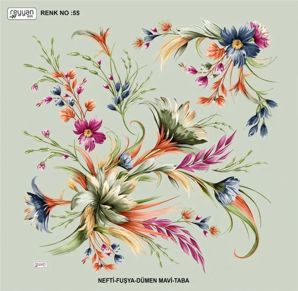 Reyyan İpek Yazma, orijinal parlaklığına sadık kalan canlı ve uzun ömürlü renkler sağlayan birinci sınıf kumaş üzerine 1. sınıf baskıya sahiptir.