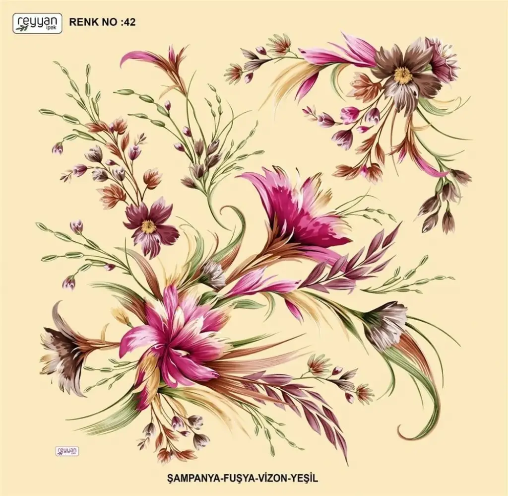 Reyyan İpek Yazma, orijinal parlaklığına sadık kalan canlı ve uzun ömürlü renkler sağlayan birinci sınıf kumaş üzerine 1. sınıf baskıya sahiptir.