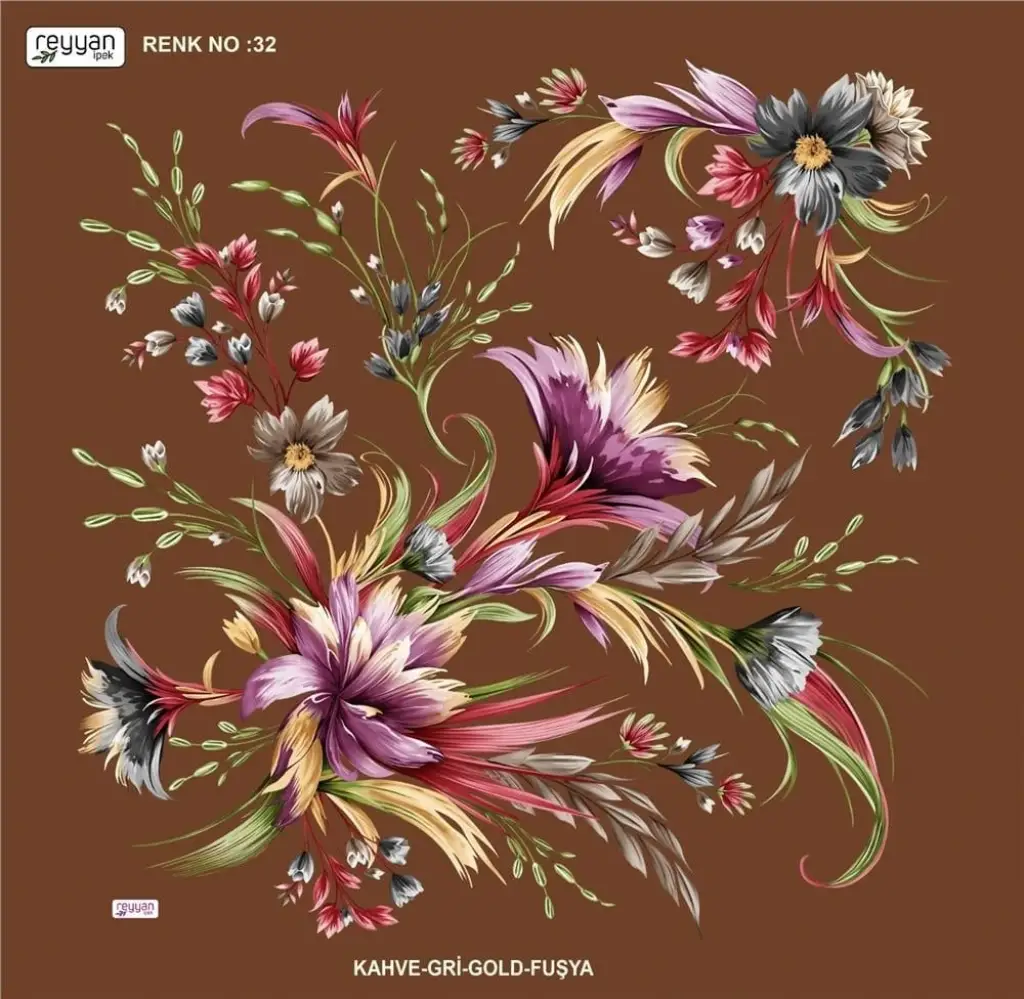 Reyyan İpek Yazma, orijinal parlaklığına sadık kalan canlı ve uzun ömürlü renkler sağlayan birinci sınıf kumaş üzerine 1. sınıf baskıya sahiptir.