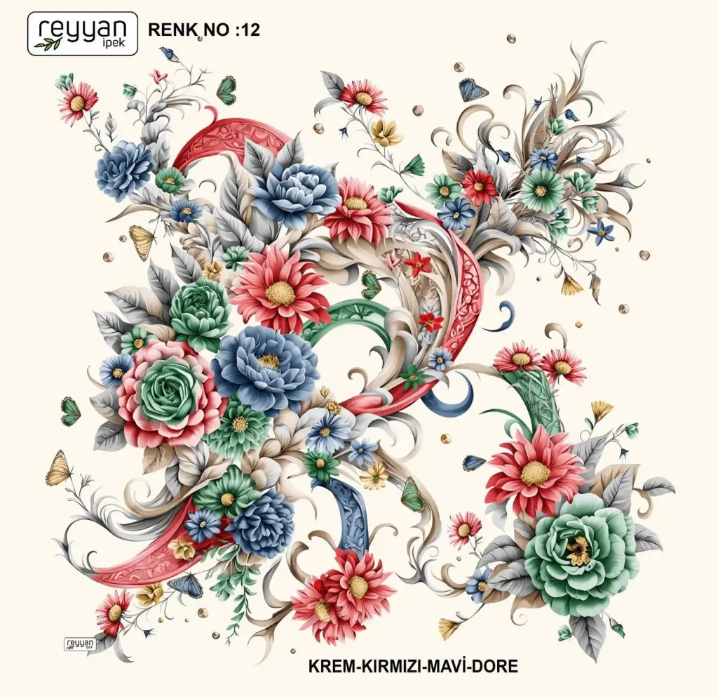 Reyyan İpek Yazma, orijinal parlaklığına sadık kalan canlı ve uzun ömürlü renkler sağlayan birinci sınıf kumaş üzerine 1. sınıf baskıya sahiptir.