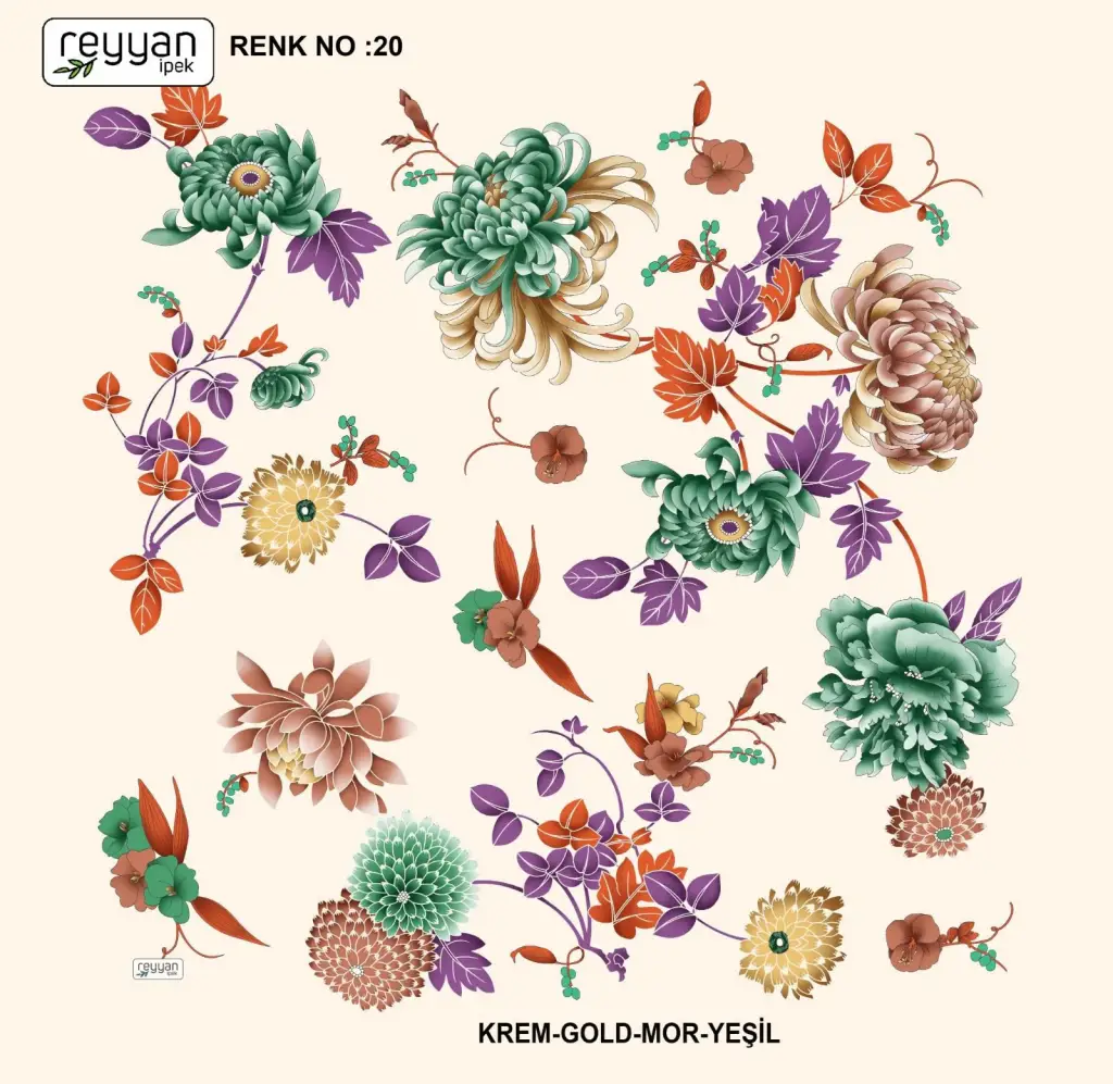 Reyyan İpek Yazma, orijinal parlaklığına sadık kalan canlı ve uzun ömürlü renkler sağlayan birinci sınıf kumaş üzerine 1. sınıf baskıya sahiptir.