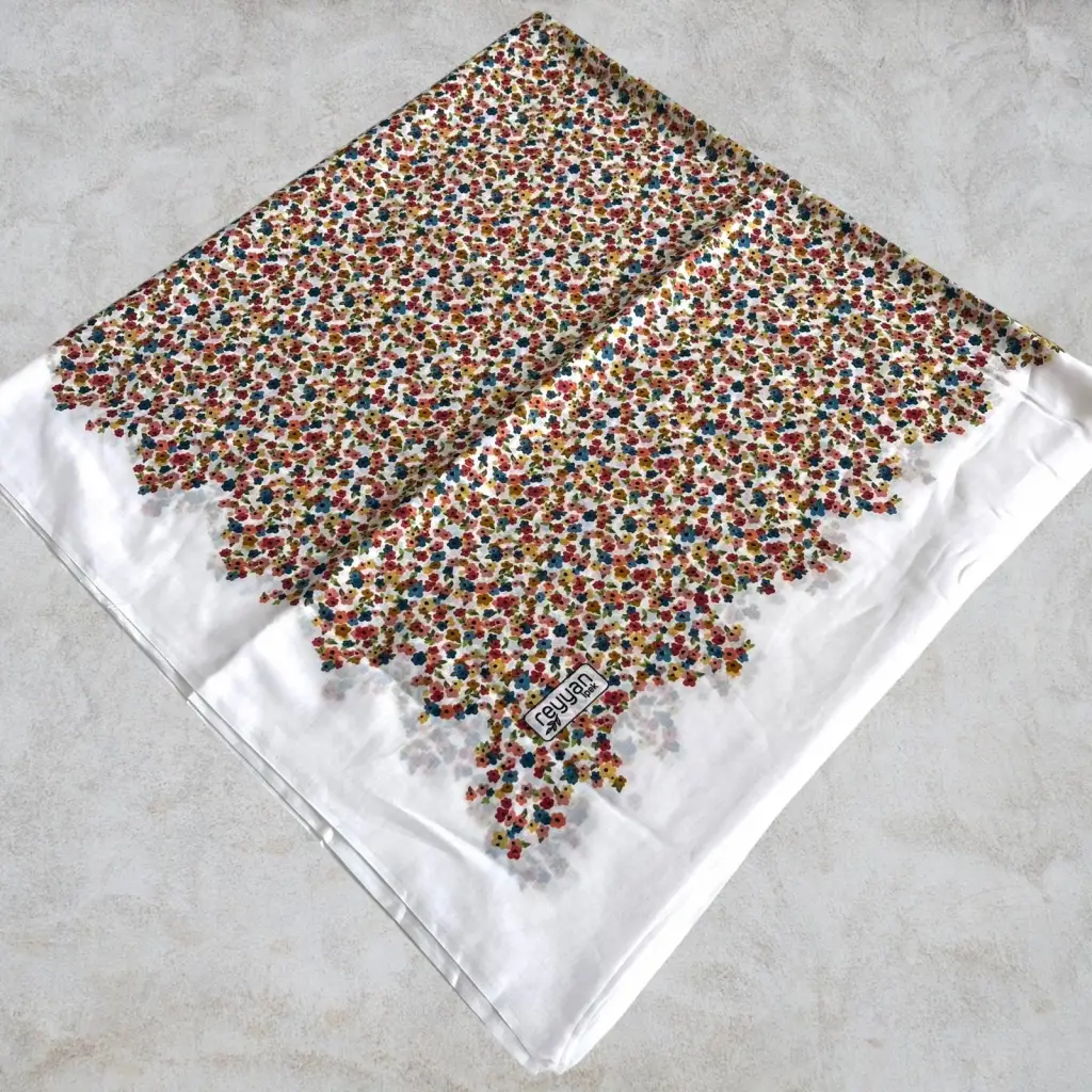 Reyyan İpek Yazma, orijinal parlaklığına sadık kalan canlı ve uzun ömürlü renkler sağlayan birinci sınıf kumaş üzerine 1. sınıf baskıya sahiptir.