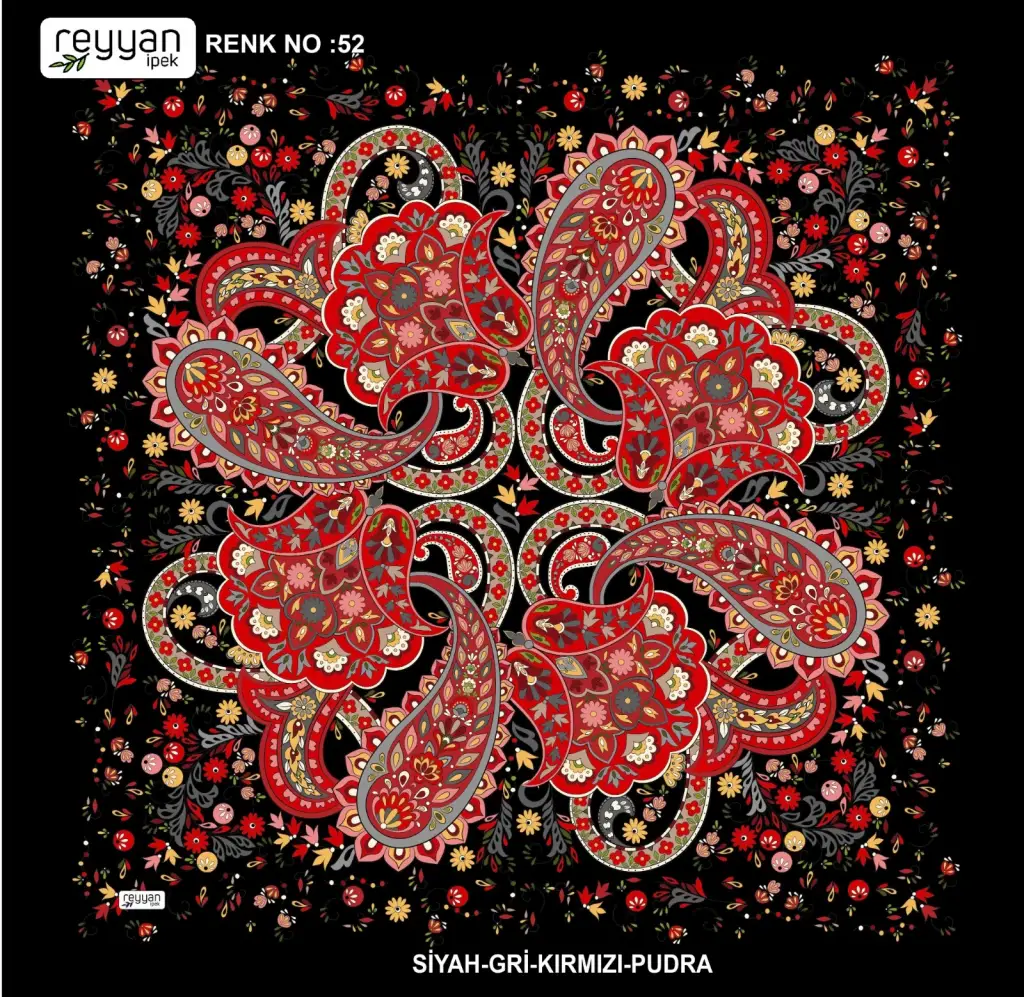 Reyyan İpek Yazma, orijinal parlaklığına sadık kalan canlı ve uzun ömürlü renkler sağlayan birinci sınıf kumaş üzerine 1. sınıf baskıya sahiptir.