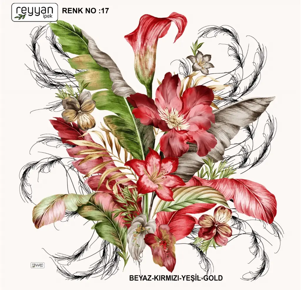 Reyyan İpek Yazma, orijinal parlaklığına sadık kalan canlı ve uzun ömürlü renkler sağlayan birinci sınıf kumaş üzerine 1. sınıf baskıya sahiptir.
