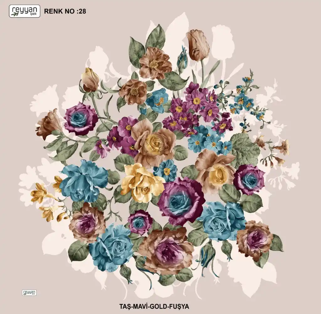 Reyyan İpek Yazma, orijinal parlaklığına sadık kalan canlı ve uzun ömürlü renkler sağlayan birinci sınıf kumaş üzerine 1. sınıf baskıya sahiptir.