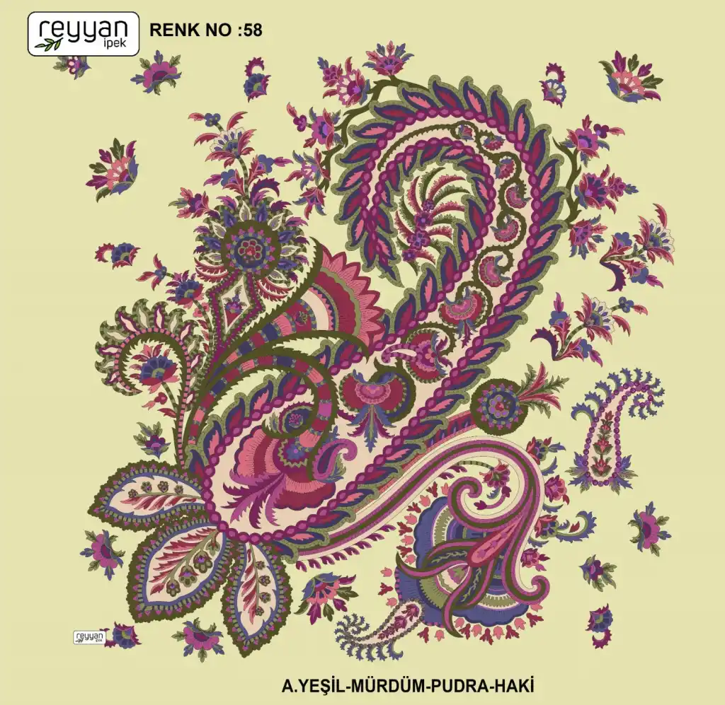 Reyyan İpek Yazma, orijinal parlaklığına sadık kalan canlı ve uzun ömürlü renkler sağlayan birinci sınıf kumaş üzerine 1. sınıf baskıya sahiptir.