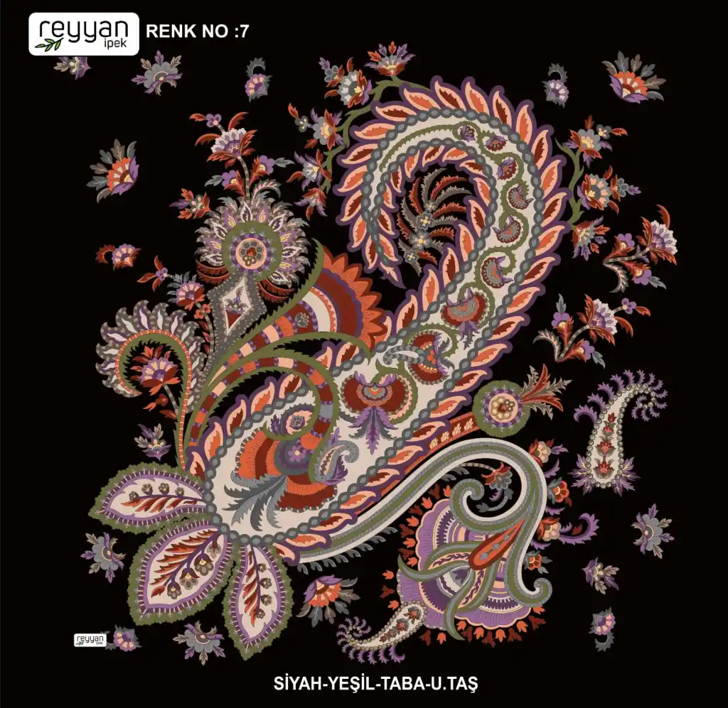 Reyyan İpek Yazma, orijinal parlaklığına sadık kalan canlı ve uzun ömürlü renkler sağlayan birinci sınıf kumaş üzerine 1. sınıf baskıya sahiptir.