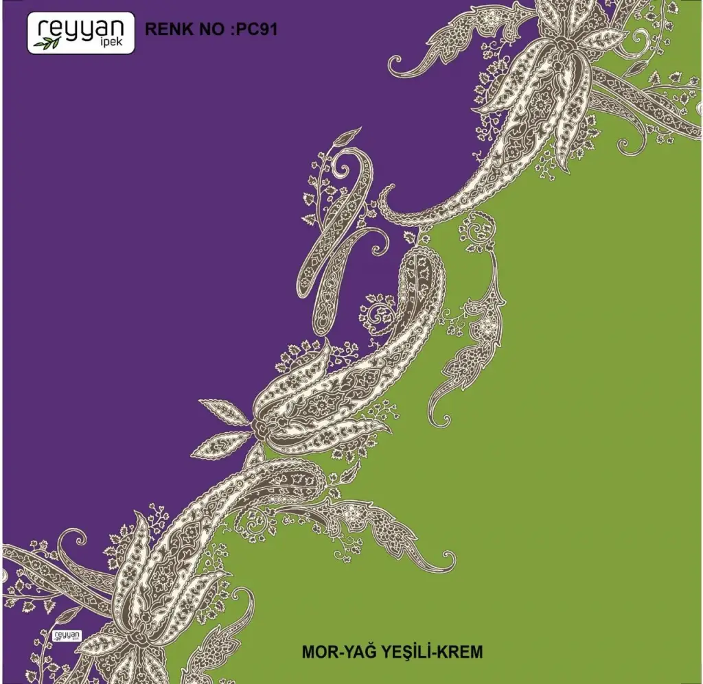 Reyyan İpek Yazma, orijinal parlaklığına sadık kalan canlı ve uzun ömürlü renkler sağlayan birinci sınıf kumaş üzerine 1. sınıf baskıya sahiptir.