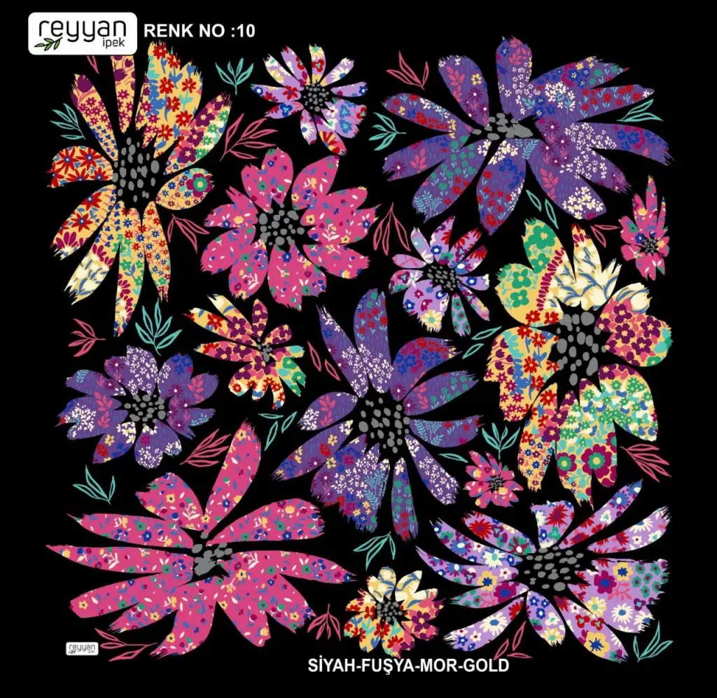 Reyyan İpek Yazma, orijinal parlaklığına sadık kalan canlı ve uzun ömürlü renkler sağlayan birinci sınıf kumaş üzerine 1. sınıf baskıya sahiptir.