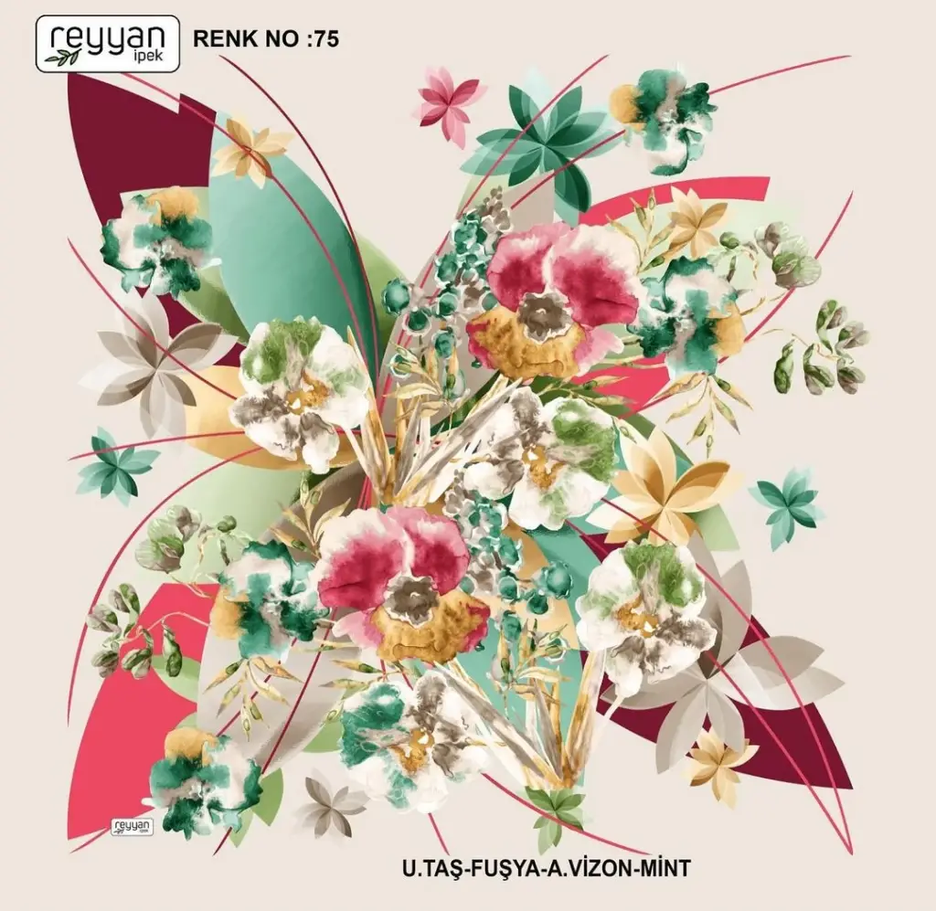 Reyyan İpek Yazma, orijinal parlaklığına sadık kalan canlı ve uzun ömürlü renkler sağlayan birinci sınıf kumaş üzerine 1. sınıf baskıya sahiptir.