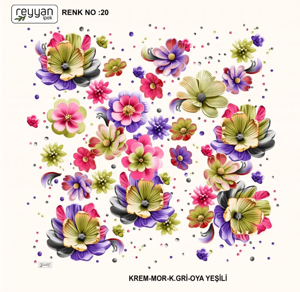 Reyyan İpek Yazma, orijinal parlaklığına sadık kalan canlı ve uzun ömürlü renkler sağlayan birinci sınıf kumaş üzerine 1. sınıf baskıya sahiptir.