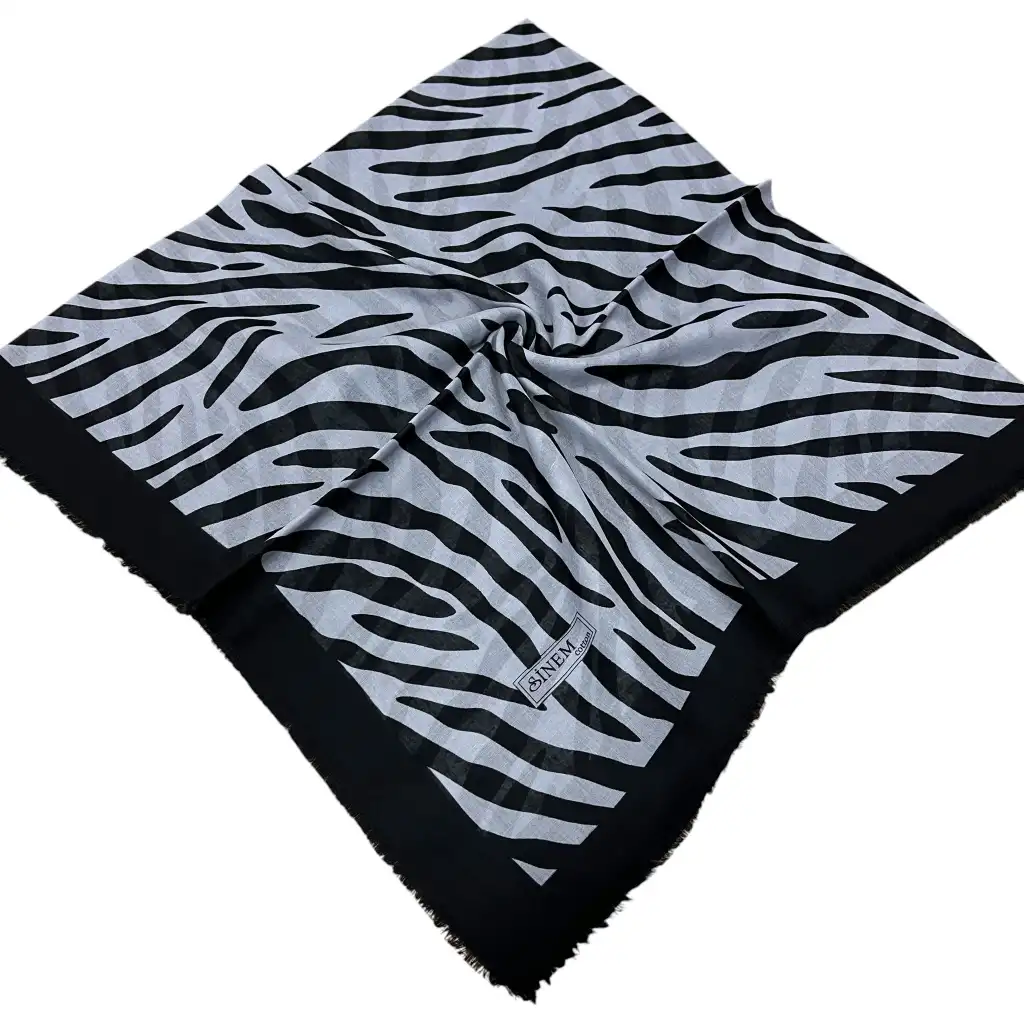 Sinem Dimi Pamuk Eşarp -(Siyah-Gri Serisi) -(FE542-06)