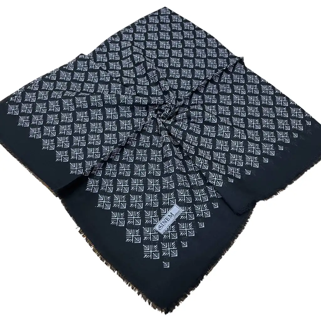 Sinem Dimi Pamuk Eşarp -(Siyah-Gri Serisi) -(FE542-09)
